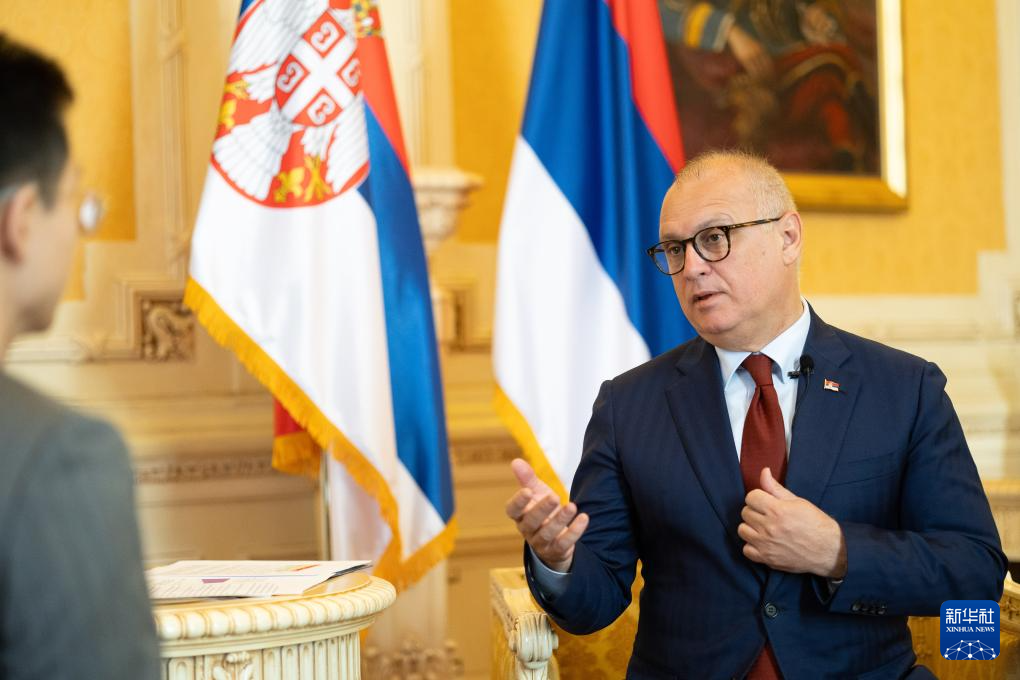 5月2日,在塞爾維亞貝爾格萊德,塞爾維亞建設(shè)、交通和基礎(chǔ)設(shè)施部長(zhǎng)韋西奇接受新華社記者專(zhuān)訪。新華社記者 李京 攝