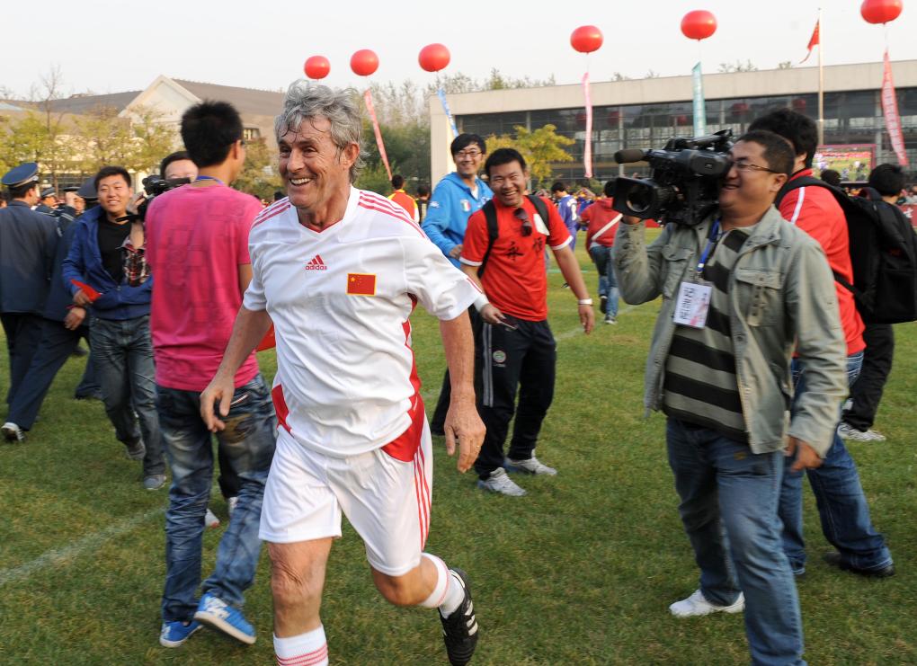 2011年10月7日,前中國國家男子足球隊主教練米盧故地重游,在沈陽和他當(dāng)年的“戰(zhàn)友”、弟子共同慶祝中國足球隊世界杯出線十周年。2001年10月7日,米盧率領(lǐng)中國國家隊在沈陽五里河體育場以1比0戰(zhàn)勝阿曼隊,提前兩輪獲得韓日世界杯入場券,圓了中國足球44年的世界杯夢想。新華社記者李鋼攝