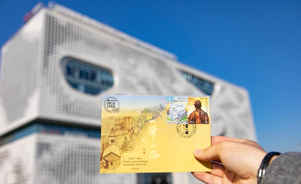 2023年12月28日,塞爾維亞郵政局在貝爾格萊德中國文化中心發(fā)行兩套中國主題郵票,紀(jì)念“一帶一路”倡議提出十周年,同時展示中國的文化與自然遺產(chǎn)。圖為當(dāng)天在貝爾格萊德拍攝的中國主題郵票。新華社發(fā)(王韡攝)