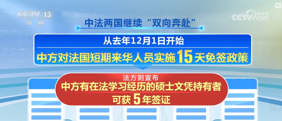 在中法文化旅游年之際,中法兩國繼續(xù)“雙向奔赴”。從2023年12月1日開始,中方對法國短期來華人員實施15天免簽政策,法方則宣布,中方有在法學習經(jīng)歷的碩士文憑持有者可獲5年簽證。