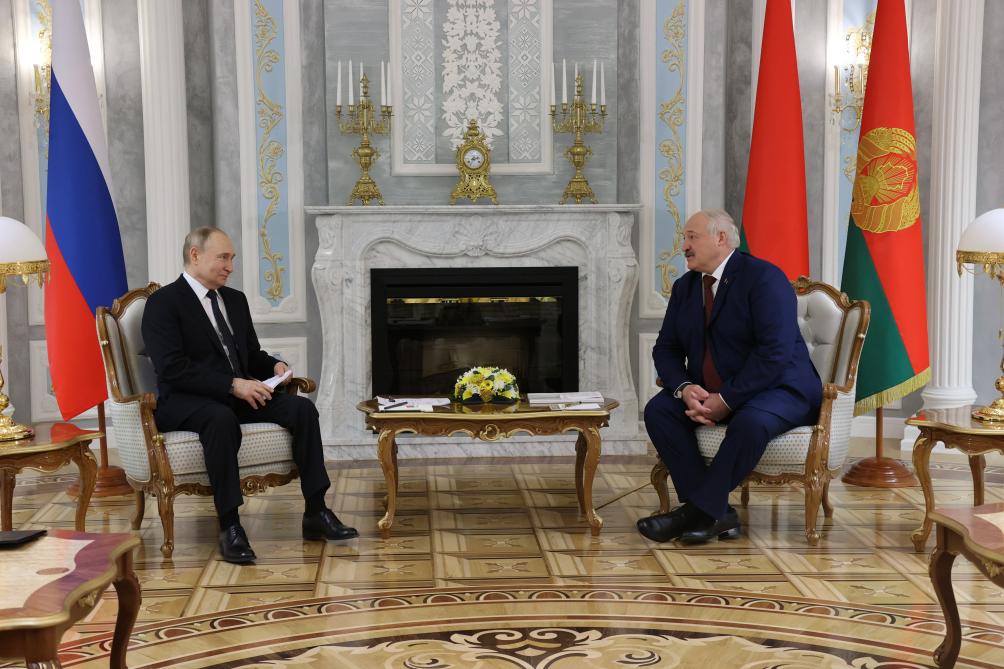 5月24日,俄羅斯總統(tǒng)普京(左)與白俄羅斯總統(tǒng)盧卡申科在白俄羅斯首都明斯克舉行會(huì)談。新華社發(fā)(白俄羅斯總統(tǒng)網(wǎng)站供圖)