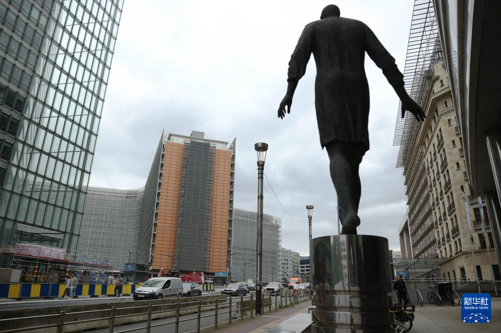 2024年6月3日,在比利時布魯塞爾,車輛駛過歐盟委員會大樓。新華社記者 趙丁喆 攝