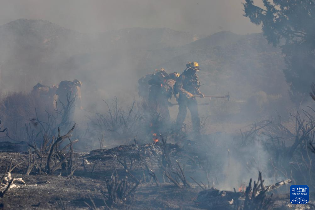 6月16日,消防隊(duì)員在美國(guó)加利福尼亞州洛杉磯縣西北部的戈曼地區(qū)進(jìn)行滅火作業(yè)。