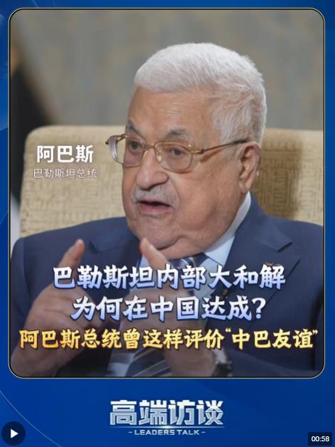 7月23日,巴勒斯坦各派在北京簽署了《關(guān)于結(jié)束分裂加強巴勒斯坦民族團結(jié)的北京宣言》。巴勒斯坦內(nèi)部大和解,為何是在中國?巴勒斯坦總統(tǒng)阿巴斯接受總臺《高端訪談》專訪時曾這樣評價中巴友誼,來聽聽他怎么說。