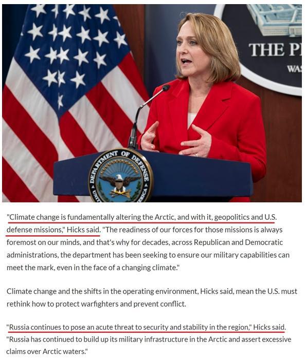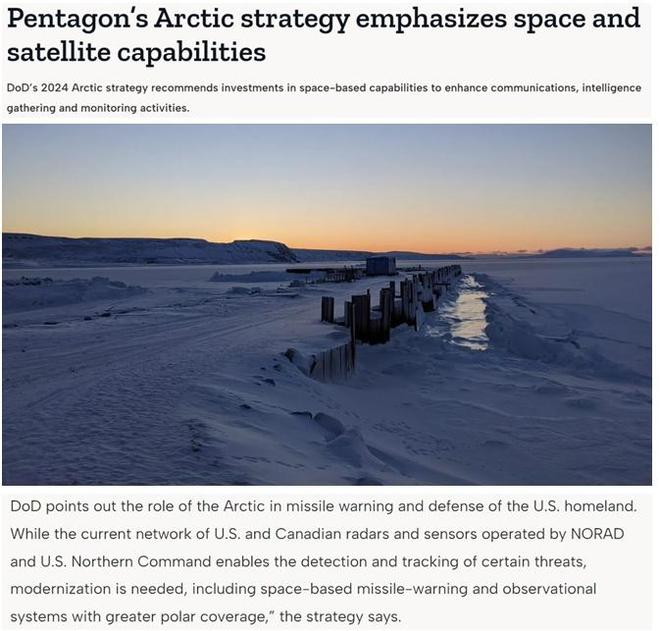 美國國防部發(fā)布的最新報告將北極描述為對美國"具有重要戰(zhàn)略意義的地區(qū)",戰(zhàn)略意義在于"通往美國國土的北部通道"和"重要的美國國防基礎(chǔ)設(shè)施"等。
