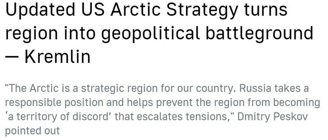 在被問及對美國這份北極戰(zhàn)略報告的看法時,俄羅斯總統(tǒng)新聞秘書佩斯科夫指出,美方報告顯示出對抗色彩,而俄羅斯一直在北極問題上采取負(fù)責(zé)任的立場,"為確保北極不會成為紛爭和局勢緊張地區(qū)做出貢獻"。