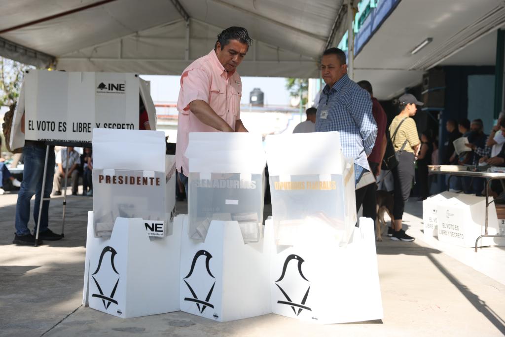 6月2日,在墨西哥首都墨西哥城,選民在一處投票站投票。新華社記者李夢(mèng)馨攝