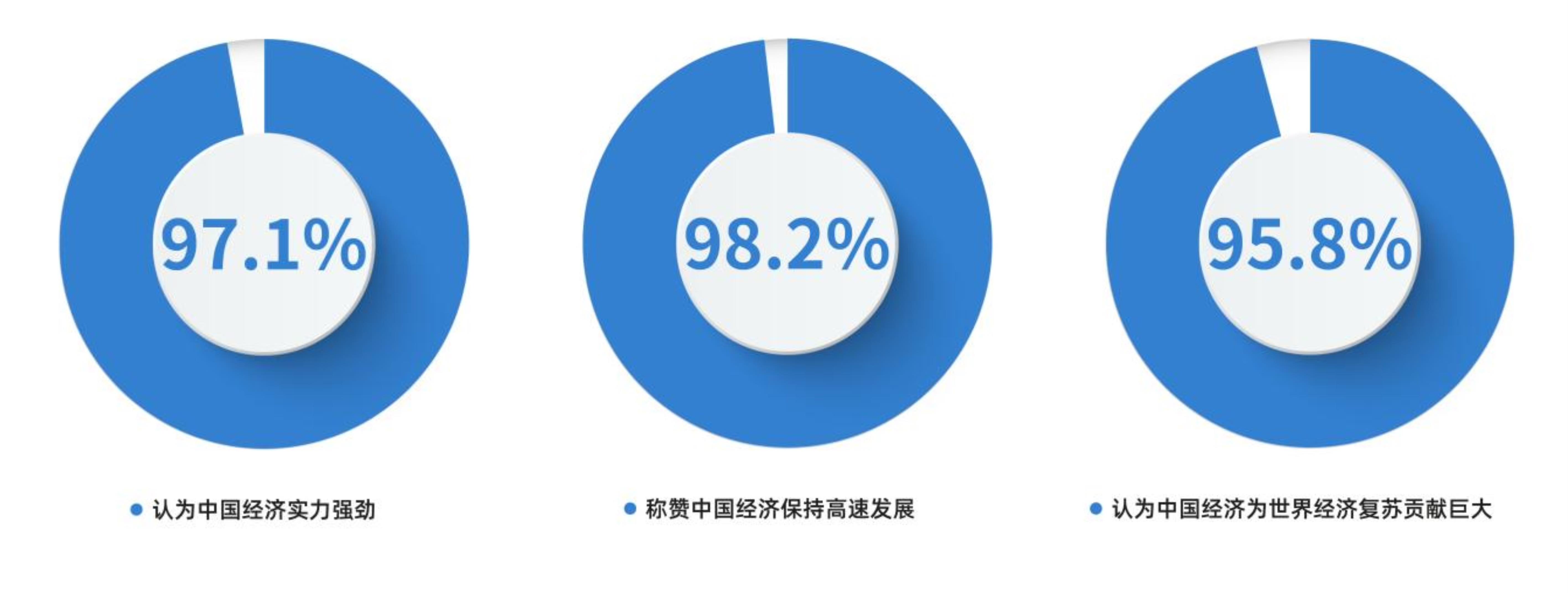 受訪青年超高的對(duì)華好感度主要源于對(duì)中國(guó)式現(xiàn)代化發(fā)展理念與成就的高度認(rèn)可,經(jīng)濟(jì)與科技領(lǐng)域表現(xiàn)尤為突出。調(diào)查中,97.1%的受訪青年認(rèn)為中國(guó)經(jīng)濟(jì)實(shí)力強(qiáng)勁,98.2%的受訪青年稱贊中國(guó)經(jīng)濟(jì)保持高速發(fā)展,95.8%的受訪青年認(rèn)為中國(guó)經(jīng)濟(jì)為世界經(jīng)濟(jì)復(fù)蘇貢獻(xiàn)巨大。
