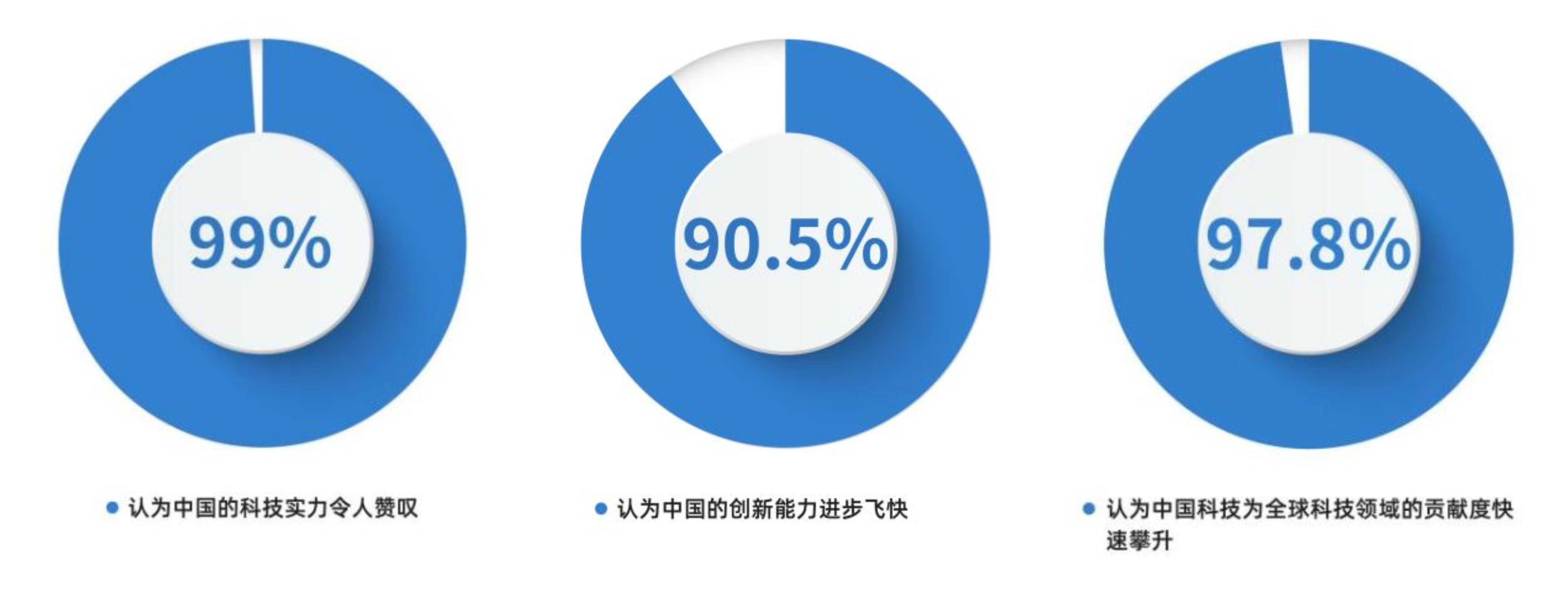 此外,99%的受訪青年認(rèn)為中國(guó)的科技實(shí)力令人贊嘆,90.5%的受訪青年認(rèn)為中國(guó)的創(chuàng)新能力進(jìn)步飛快,97.8%的受訪青年認(rèn)為中國(guó)科技為全球科技領(lǐng)域的貢獻(xiàn)度快速攀升。