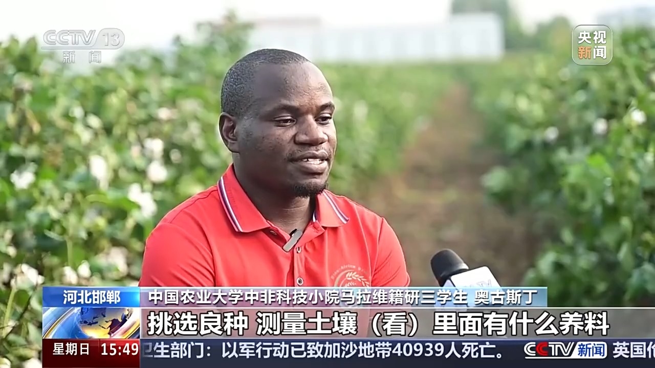 中國農(nóng)業(yè)大學中非科技小院馬拉維籍研一學生 馬達:未來我也希望回國發(fā)展大農(nóng)場,高效種植農(nóng)業(yè),保障國家糧食安全。馬拉維政府正鼓勵發(fā)展大農(nóng)場,對我來說是個巨大機會。中國是非洲很好的榜樣,我非常感恩能來中國。