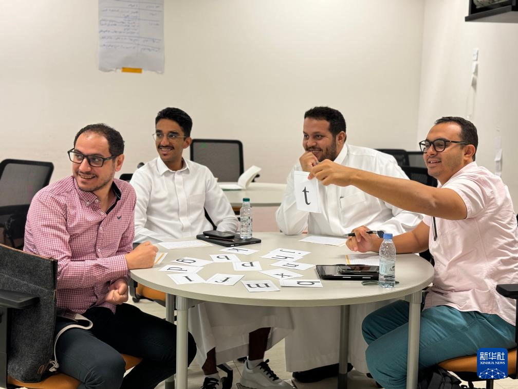 “你好”“老師好”……在沙特阿拉伯首都利雅得北部的一所中學(xué),17名身著阿拉伯白袍的學(xué)生正跟著中文老師史肖一遍遍誦讀著新學(xué)到的內(nèi)容,讀書聲里洋溢著快樂。