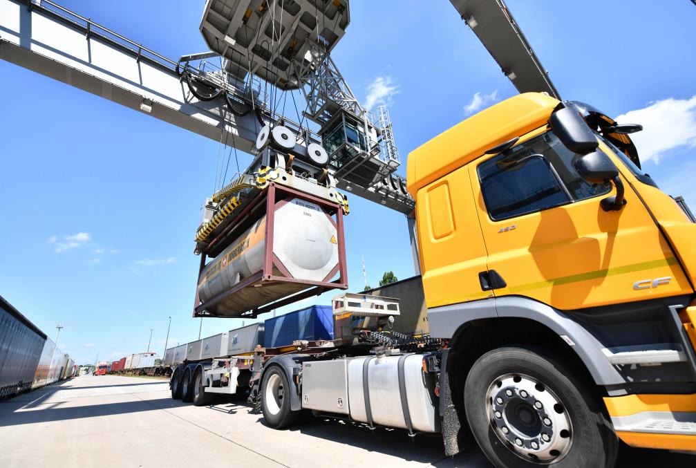 5月27日,龍門吊在德國(guó)漢堡-比爾韋爾德DUSS貨運(yùn)場(chǎng)站作業(yè)。德國(guó)漢堡是中歐班列在歐洲的重要站點(diǎn)。新華社記者任鵬飛攝
