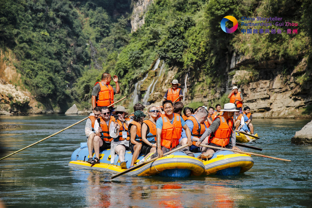 25日,2024中國故事共創(chuàng)會(huì)“外籍網(wǎng)紅貴州行”采訪團(tuán)一行來到貴州省黔西南興義市,在興義市馬嶺河峽谷欣賞自然奇觀,體驗(yàn)特色漂流。