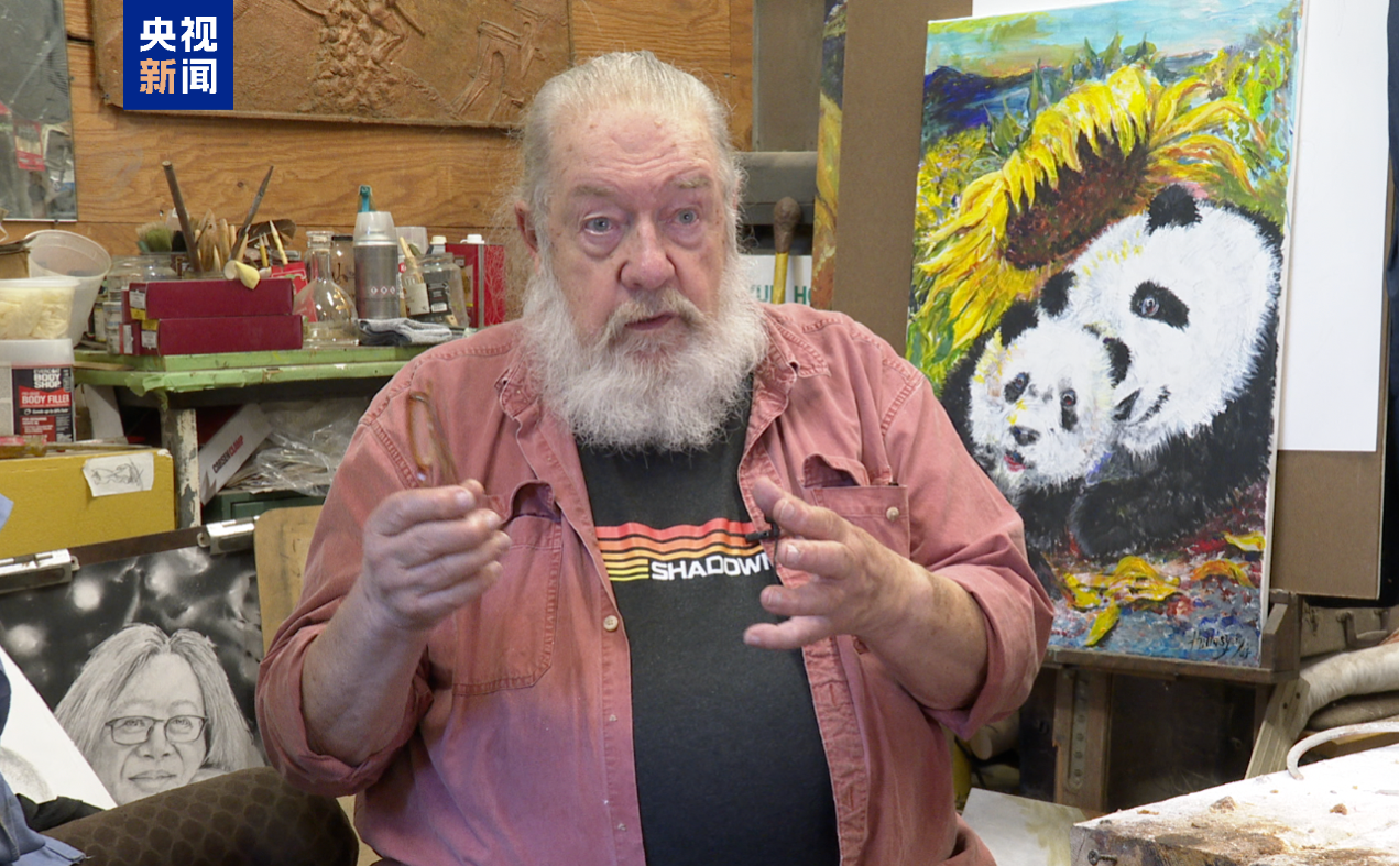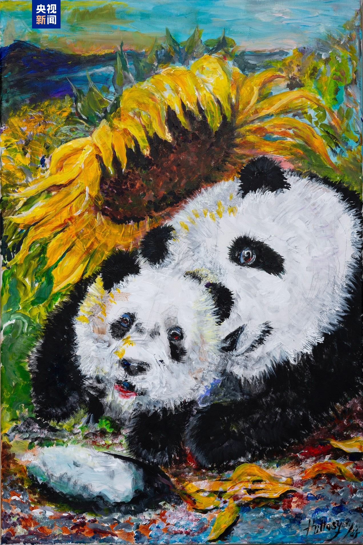 向日葵既是霍洛西的創(chuàng)作主題之一,也象征著加州的植被和自然景觀,霍洛西把加州向日葵和中國大熊貓結(jié)合在一起,比喻旅美大熊貓受到美國人民的喜愛和呵護,在圣迭戈的新家茁壯成長。霍洛西認為,人與人交流的關鍵是保持開放的心態(tài),在傾聽的過程中學習與對話。