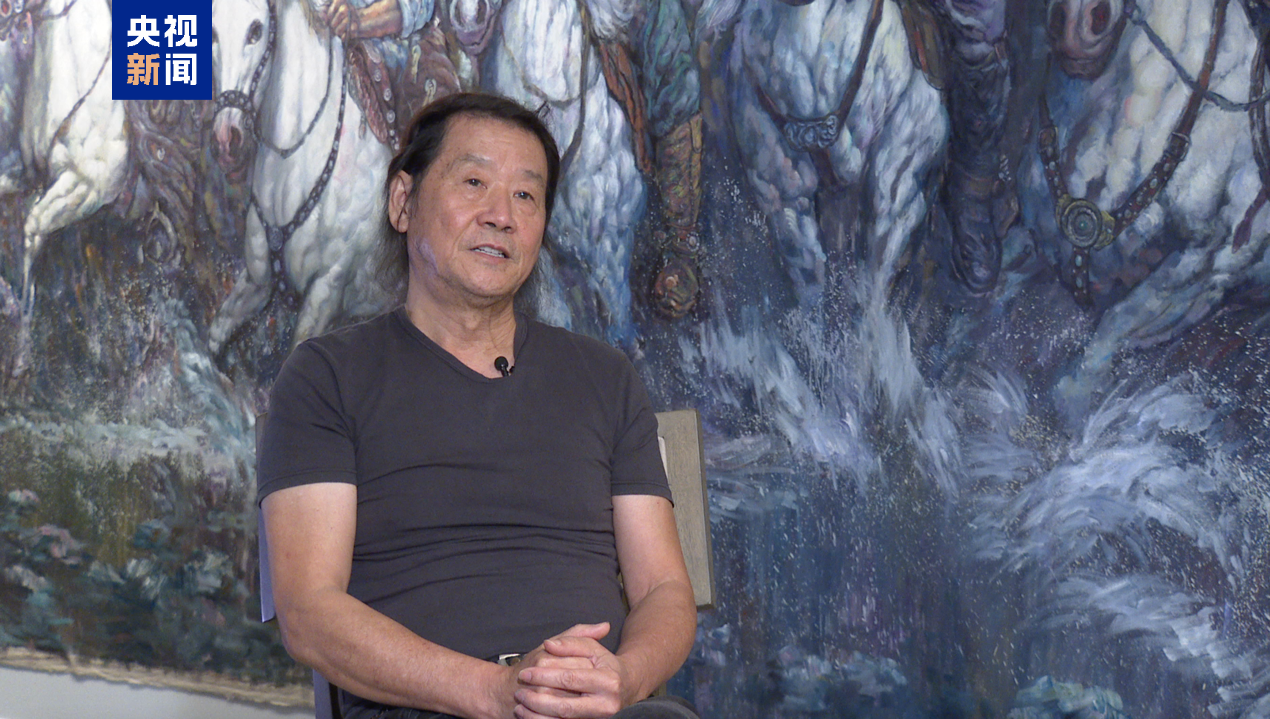中國畫家楊曉陽的作品《遠古足音》描繪了嫦娥奔月,寄托了中華民族千年飛天夢,而中國航天事業(yè)的發(fā)展正將這一夢想化為現(xiàn)實,書寫新的傳奇。
