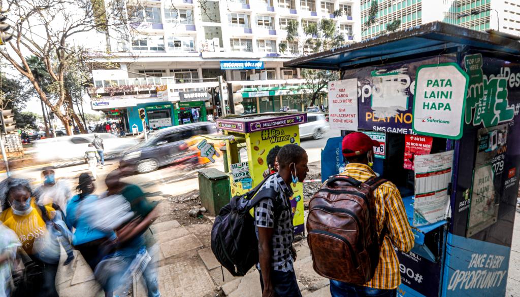 2021年9月16日,人們?cè)诳夏醽喪锥純?nèi)羅畢市中心一處M-Pesa代理網(wǎng)點(diǎn)辦理業(yè)務(wù)。新華社記者張宇攝
