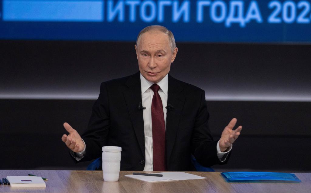 12月19日,在俄羅斯首都莫斯科,俄羅斯總統(tǒng)普京在“年度盤點(diǎn)”活動上講話。新華社記者白雪騏攝