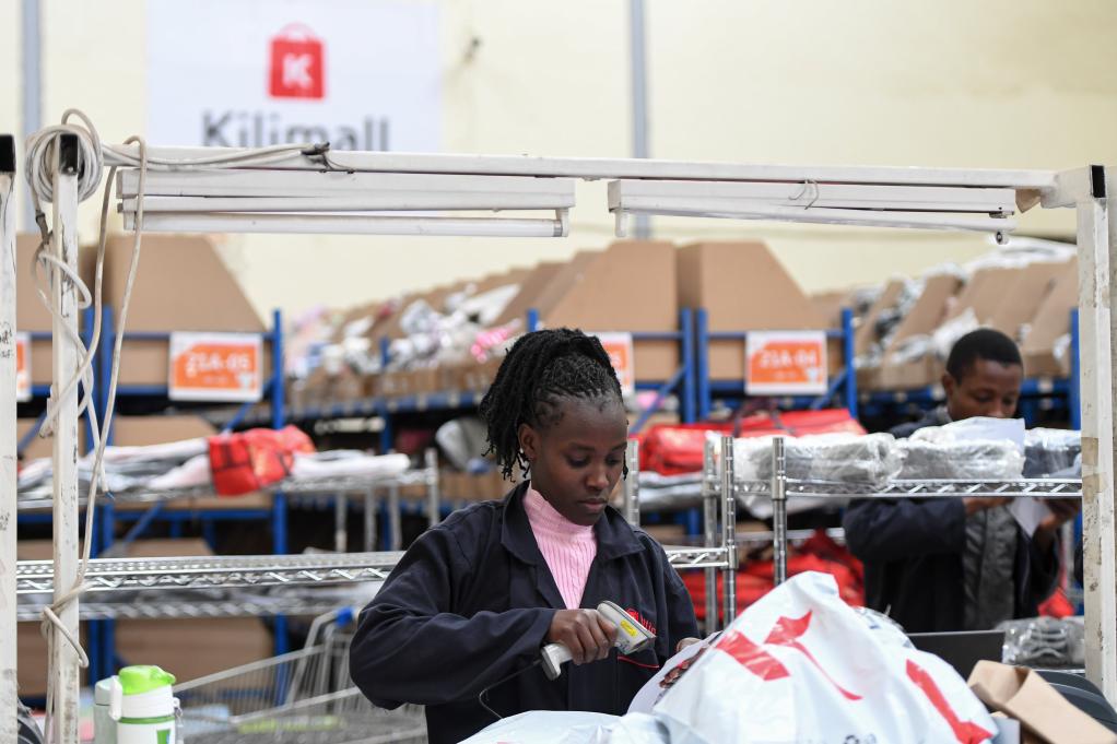 2023年7月28日,在肯尼亞姆洛隆戈,湖南長沙非拓信息技術(shù)有限公司旗下電商平臺Kilimall的員工在倉庫內(nèi)分揀貨物。(新華社記者李亞輝攝)