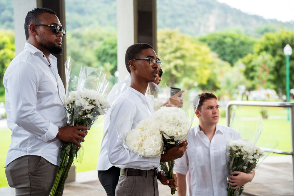 1月9日,在巴拿馬首都巴拿馬城,人們準備向紀念1964年“護旗運動”的“永恒之火”紀念碑獻花圈。新華社記者許詠政攝