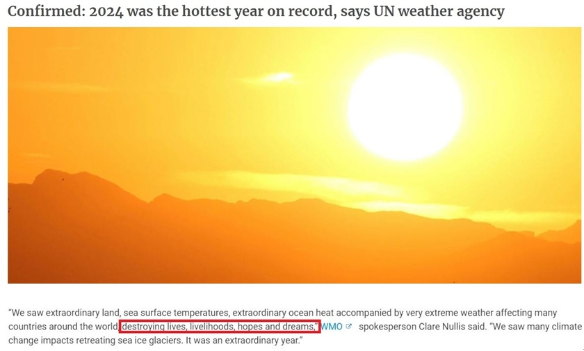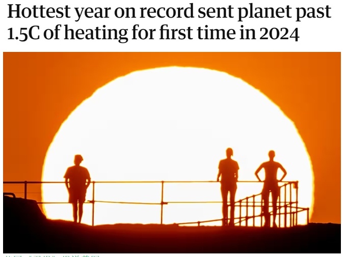 根據(jù)該組織對(duì)多份國(guó)際數(shù)據(jù)的綜合分析,2024年全球平均氣溫比工業(yè)化前平均水平高出約1.55攝氏度,是首個(gè)該差額超過1.5攝氏度的年份。