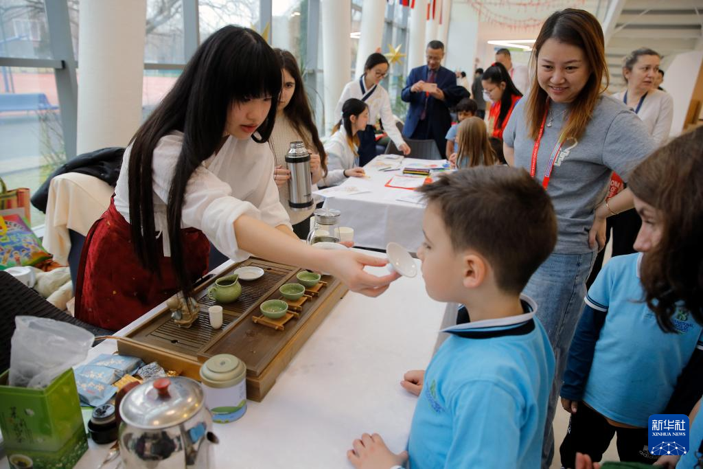 在羅馬尼亞首都布加勒斯特,由當(dāng)?shù)厝A僑華人學(xué)生自編自導(dǎo)的新春聯(lián)歡會1月31日在布加勒斯特國際學(xué)校舉行。聯(lián)歡會上,學(xué)生們通過歌舞、鋼琴演奏等形式展現(xiàn)了中華文化的獨特魅力。學(xué)校還設(shè)置了茶藝、折紙、套圈、踢毽子等互動體驗環(huán)節(jié)。通過參與這些趣味游戲以及寫福字、做燈籠等傳統(tǒng)手工藝活動,當(dāng)?shù)貙W(xué)生感受到中國春節(jié)的喜慶,加深了對中華文化的認(rèn)知。
