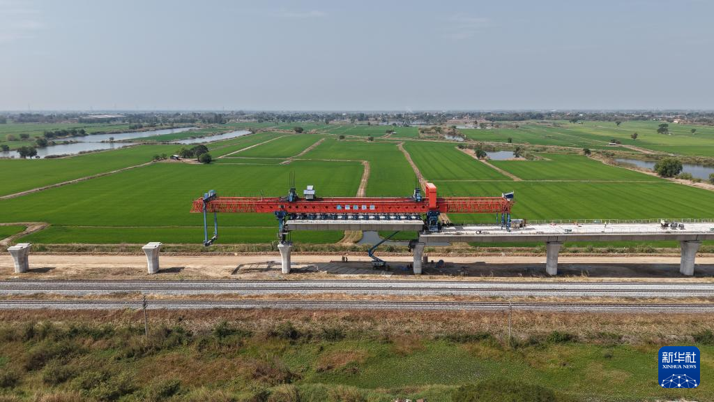 這是1月30日在泰國大城府拍攝的中泰高鐵項目4-3標(biāo)段施工現(xiàn)場(無人機(jī)照片)。新華社記者 孫瑋彤 攝