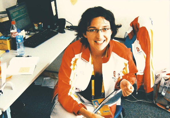 讓蒂擔(dān)任2008年北京奧運會的法語翻譯時的照片。