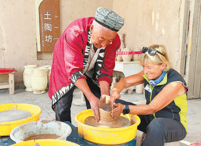 維娜·卡瑪洛塔在新疆體驗(yàn)制陶工藝。  朱裕華攝