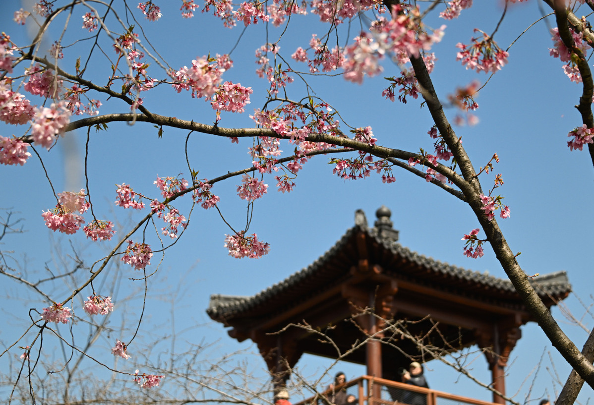 3月18日在湖北省武漢市東湖櫻園拍攝的櫻花。(圖片來源:新華社)