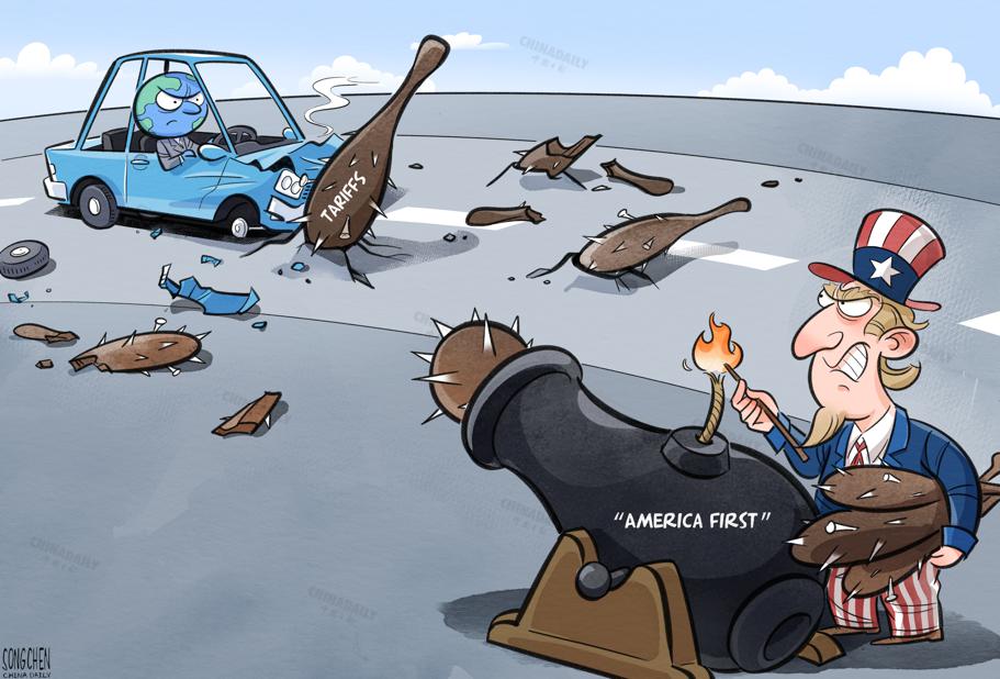 貿(mào)易保護(hù)砸自己的腳。(作者:中國(guó)日?qǐng)?bào) 羅杰)