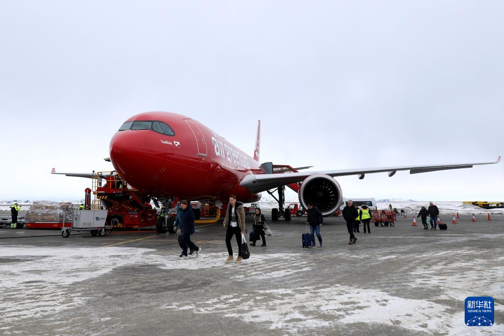 3月18日,人們乘坐飛機抵達丹麥自治領(lǐng)地格陵蘭島首府努克。新華社記者 趙丁喆 攝