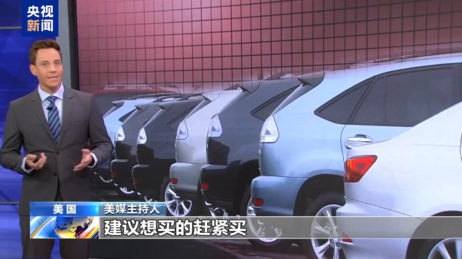 美媒主持人:我們先從汽車說起,建議想買的趕緊買。目前美國對所有非美國組裝的車輛征收25%關稅,這類車輛占市場總量的46%。但請注意,美國本土組裝的汽車同樣會漲價,因為這些車輛的部分零部件產(chǎn)自海外,而零部件也面臨關稅。