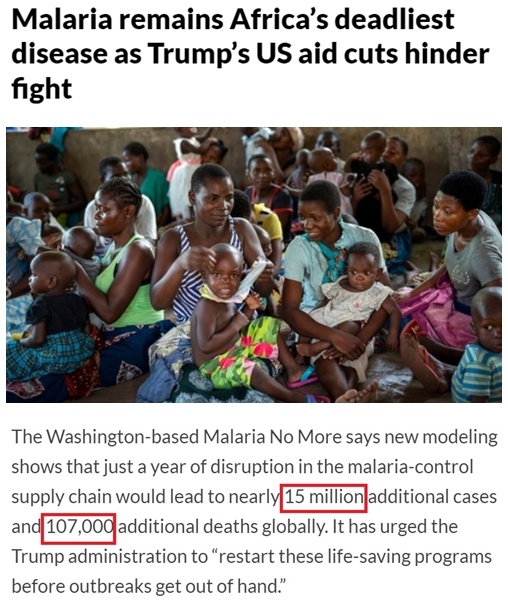 世界衛(wèi)生組織總干事譚德塞上個(gè)月警告說,美國突然削減對全球衛(wèi)生項(xiàng)目的資金支持,可能使國際社會防治瘧疾、艾滋病、結(jié)核病和麻疹等疾病所取得的進(jìn)展發(fā)生逆轉(zhuǎn)。此外,削減資金也將阻礙根除脊髓灰質(zhì)炎、監(jiān)測禽流感以及應(yīng)對疾病暴發(fā)和人道主義危機(jī)的努力。