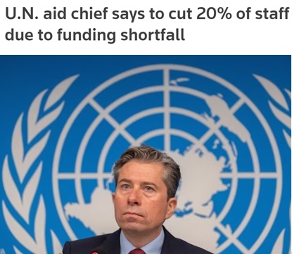 聯(lián)合國人道主義事務(wù)協(xié)調(diào)廳近日發(fā)表公開信說,由于資金遭遇“殘酷削減”,尤其是美國政府大幅叫停對外援助,該機(jī)構(gòu)將不得不裁撤20%、即500多名工作人員。