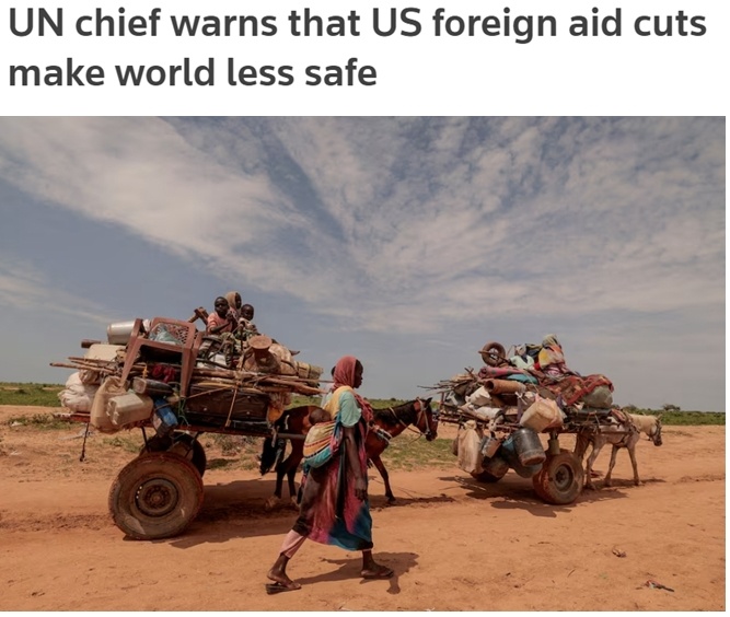 聯(lián)合國秘書長古特雷斯此前曾表示,美國大幅削減對外援助無異于一場人為制造的“人道主義地震”,將對世界上最弱勢群體造成嚴(yán)重傷害,不僅讓世界更不健康、更不安全,也有損美國自身利益。