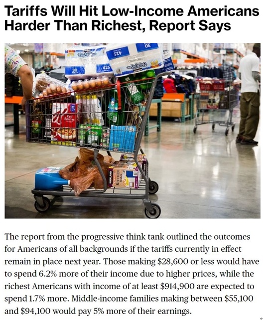 用耶魯預算實驗室主任、白宮經濟顧問委員會前首席經濟學家厄尼·特德斯奇的話說,“美國低收入人群受到關稅的影響會更大”。