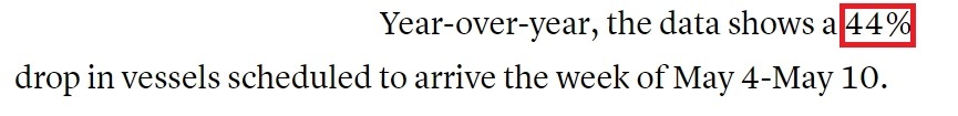 美國消費者新聞與商業(yè)頻道網站:長灘港首席執(zhí)行官科爾德羅預計,5月4日至5月10日期間,到港貨船數量與去年同期相比將下降44%。