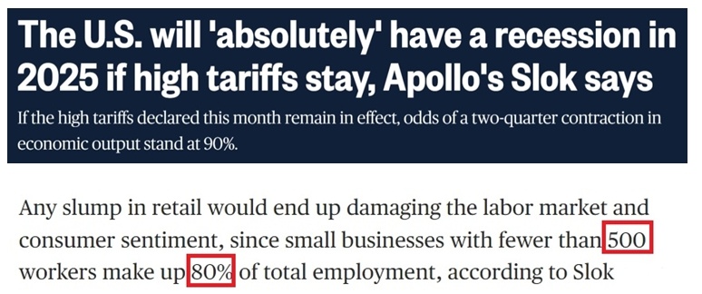 他還警告,如果高關稅持續(xù)下去,美國經濟連續(xù)兩個季度萎縮的可能性將高達90%,今年年內“絕對”會陷入衰退。