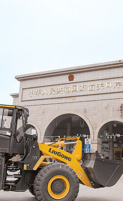 在廣西憑祥友誼關(guān)口岸,一批裝載機(jī)駛過(guò)口岸出口越南。新華社記者 曹祎銘攝