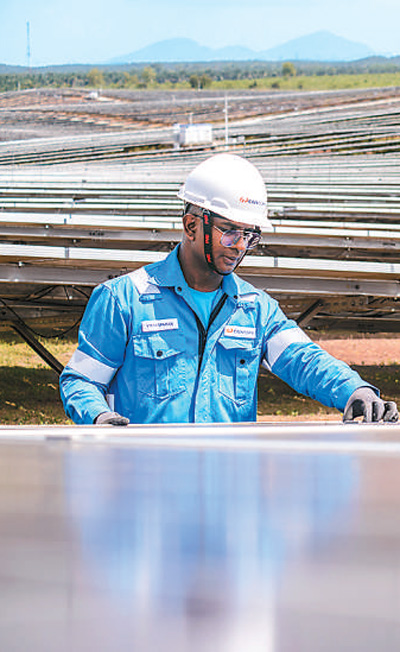 馬來(lái)西亞吉打州南部,由中企承建并運(yùn)營(yíng)的瓜拉基蒂光伏電站上,工人在巡檢設(shè)備。張紋綜攝(新華社發(fā))