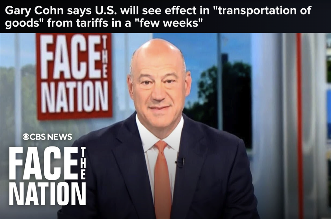 在特朗普第一個總統(tǒng)任期出任過總統(tǒng)首席經(jīng)濟顧問的加里·科恩日前在接受美國哥倫比亞廣播公司采訪時表示,鑒于進口商品的分銷周期約為8周,這意味著美國政府4月初宣布的所謂“對等關(guān)稅”的實際影響將在5月底開始顯現(xiàn)。