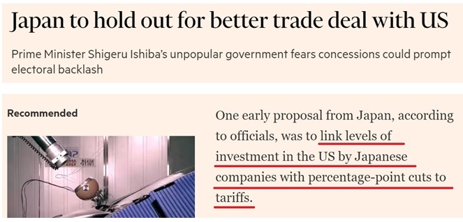 另據(jù)報道,考慮到日本是美國最大海外投資來源國,日方除考慮進(jìn)一步對美開放市場等讓步條件外,早期談判方案中還包括將美國對日商品關(guān)稅減免的百分點與日本企業(yè)在美投資水平掛鉤。