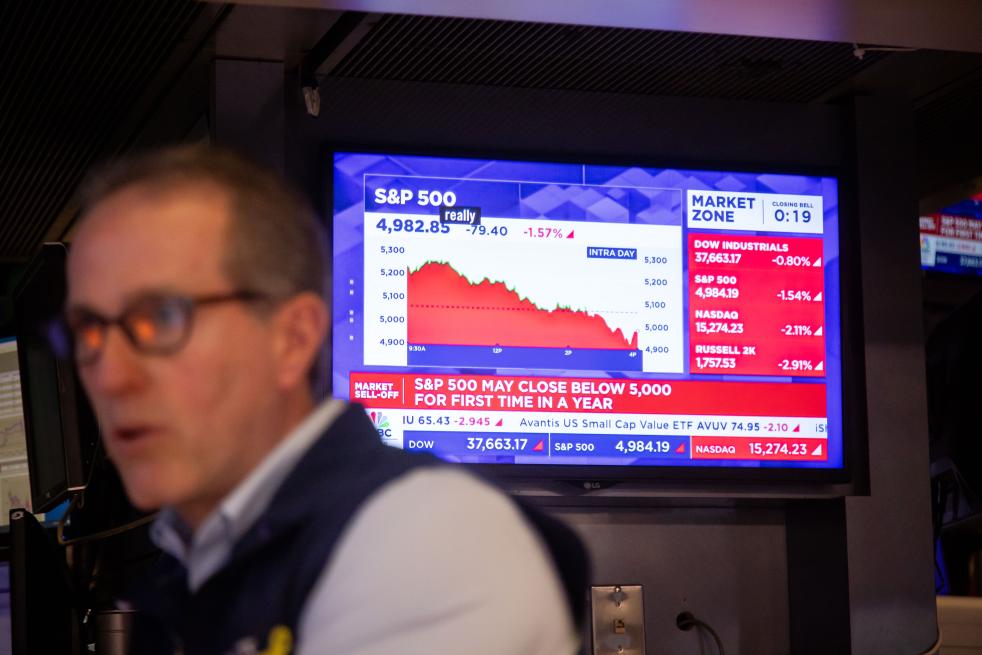 4月8日,交易員在美國(guó)紐約證券交易所交易大廳工作。新華社發(fā)(郭克攝)