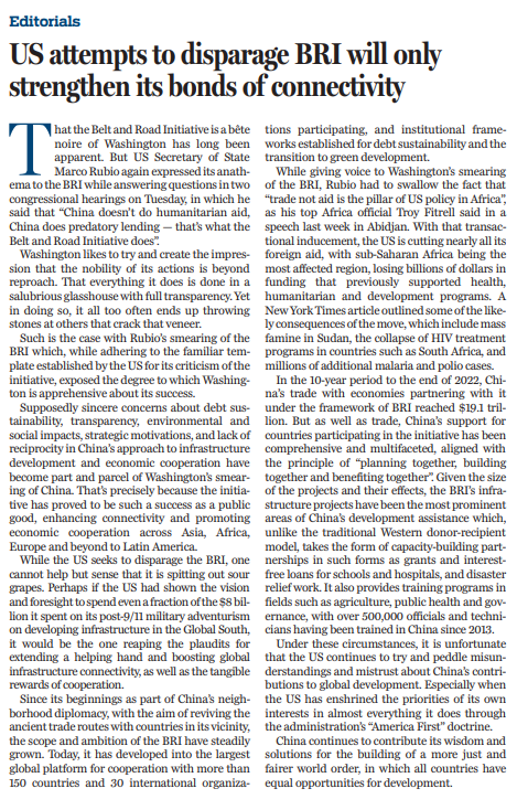 原文標(biāo)題:US attempts to disparage BRI will only strengthen its bonds of connectivity