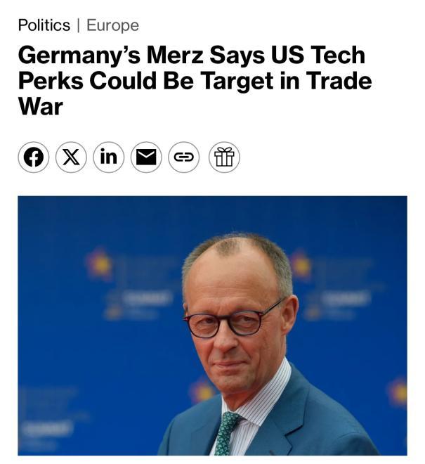 德國總理默茨:“目前,美國科技公司在歐盟受到‘大力保護(hù)’,包括在稅收方面,而這種情況可以改變。我并不想讓對抗升級,而是希望共同解決這個問題。在歐盟看來,貿(mào)易戰(zhàn)沒有贏家。(可是)在美國看來,關(guān)稅能夠單方面保護(hù)美國經(jīng)濟(jì),也是一種‘零和游戲’,即當(dāng)歐盟經(jīng)濟(jì)變得更糟糕時對美國有利?!?/p>