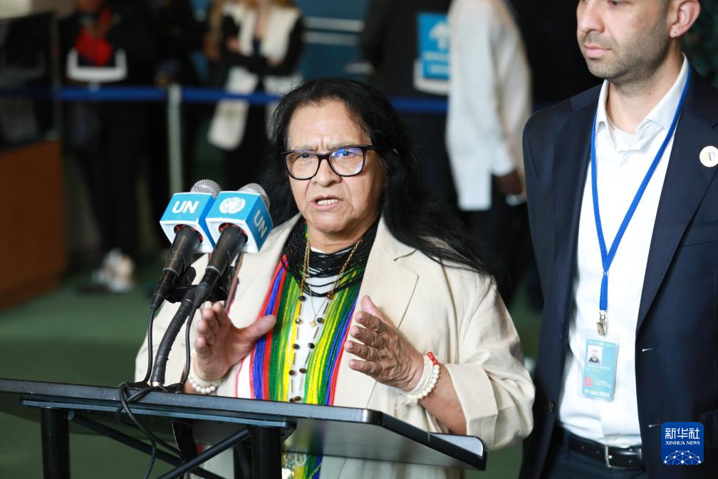 6月3日,在位于紐約的聯(lián)合國(guó)總部,剛果(金)外長(zhǎng)泰蕾茲·卡伊寬巴·瓦格納在剛果(金)當(dāng)選聯(lián)合國(guó)安理會(huì)非常任理事國(guó)后講話。新華社記者 謝鍔 攝