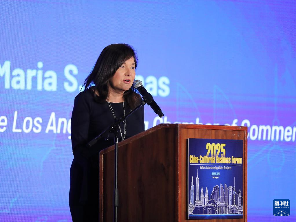 6月2日,在美國洛杉磯,洛杉磯地區(qū)商會主席瑪麗亞·薩利納斯在2025年中國—加州經(jīng)貿(mào)論壇上發(fā)表講話。新華社發(fā)(邱晨攝)