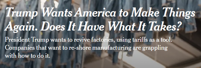 美國政府挑起了一場全球貿易戰(zhàn),它賭的是對其他國家征稅將會讓就業(yè)和工廠“重回”美國。然而,《紐約時報》近日發(fā)表的一篇文章對這一策略提出了強烈質疑,并揭示了美國制造業(yè)回流面臨的巨大挑戰(zhàn)。