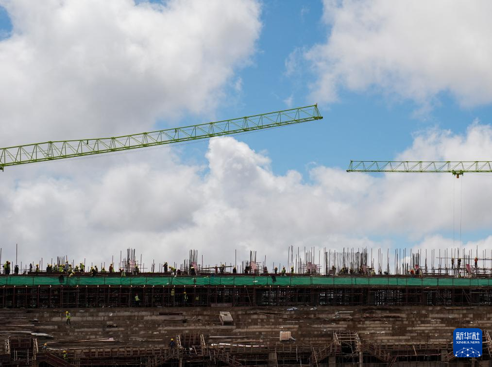 這是坦桑尼亞北部城市阿魯沙的一片繁忙工地:六座高聳的塔吊伸展著鋼鐵巨臂,在高空精準(zhǔn)吊運(yùn)建材;焊接聲、機(jī)械轟鳴聲與指令聲此起彼伏,交織成一首建設(shè)交響曲;上千名工人頭戴安全帽、身著反光背心,正全力拉滿施工“進(jìn)度條”……一座現(xiàn)代化體育場已初具雛形。