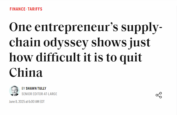 美國《財(cái)富》雜志網(wǎng)站6月8日刊發(fā)文章《一個(gè)企業(yè)家艱難“去中國化”的啟示》,闡述了中國供應(yīng)鏈與產(chǎn)業(yè)鏈的優(yōu)勢,也揭示了美國制造業(yè)回流面臨的巨大挑戰(zhàn)。
